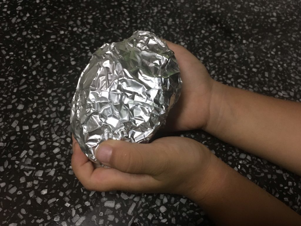 多少包み方が雑でも問題ないので、子供のやりたいようにやらせるのもキャンプならではの楽しみ方です。