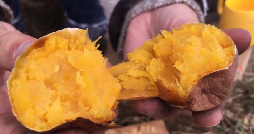芋の種類にもよりますが、焚火の火でじっくり焼いた芋はかなり美味しいですよ。